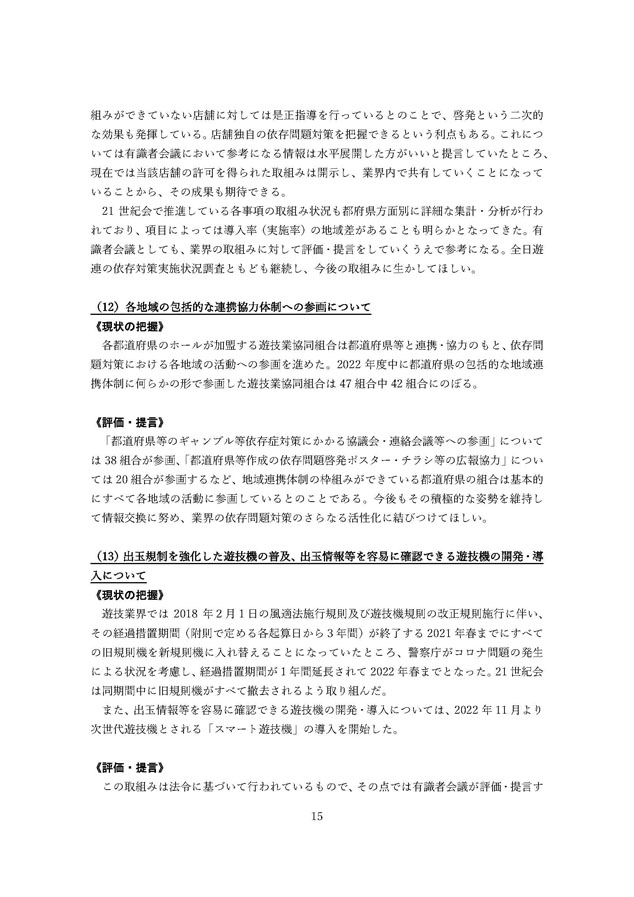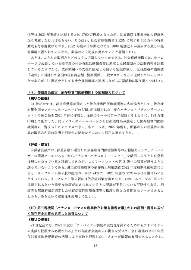 2022年度 パチンコ・パチスロ産業依存対策有識者会議からの答申