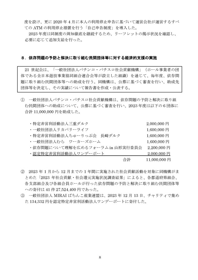 2023年度パチンコ・パチスロ依存問題対策実施状況報告書