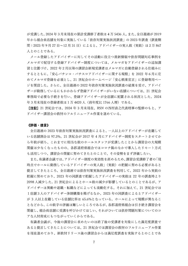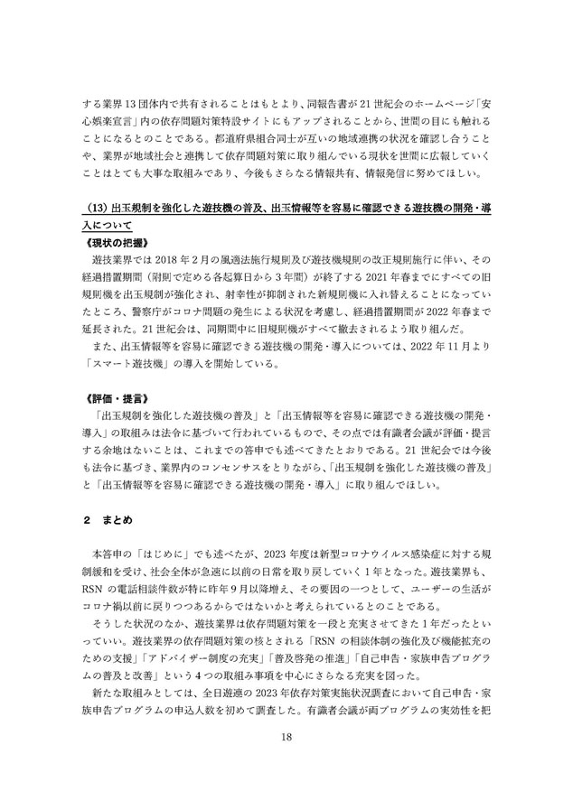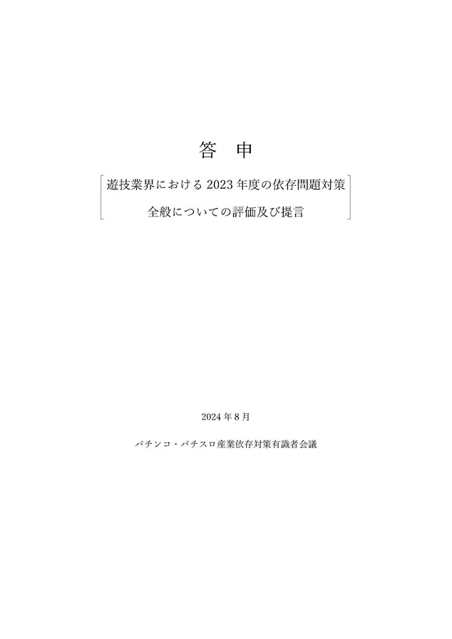2023年度 パチンコ・パチスロ産業依存対策有識者会議からの答申